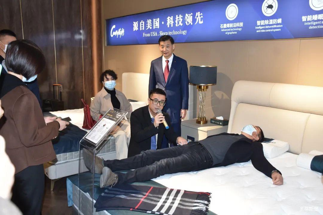 12月25日上午,按照发布会流程安排,参与发布会的嘉宾先到名家居世博园【梦凯莎】旗舰店进行了参观。上午9:45分,经销商嘉宾们陆续来到名家居世博园2楼——美国梦凯莎的展厅里,尊龙时凯集团营销总经理陈玉伟先生带领梦凯莎杨讲师团队为嘉宾们讲解【梦凯莎床垫】新品系列的10种睡感体验及材质工艺,让嘉宾们从工艺特点,科技睡感上,实时体验【梦凯莎床垫】的独有特色。“一张好床垫,睡出好健康”,“梦凯莎”品牌以其卓尔不群的产品优势和为专为国人打造健康舒适睡眠的品牌理念赢得了在场经销商的一致好评。