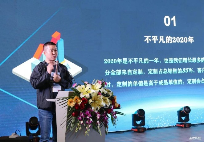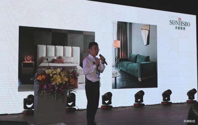 华灯璀璨的开场仪式,点燃了现场如火如荼的气氛。尊龙时凯集团营销总经理陈玉伟先生对晚会进行了主题发言,他对2020年的营销工作进行了总结,并着重从营销工作部署、重点项目开展、产品整合、拎包帮扶、渠道运营和移动+定制整装优势等方面对2021年的营销工作做了全面的统筹规划。同时,他还讲解了“美国梦凯莎床垫”新品的产品工艺、市场优势、产品定位,使经销商对我们的新产品拥有更深入的认识和了解。