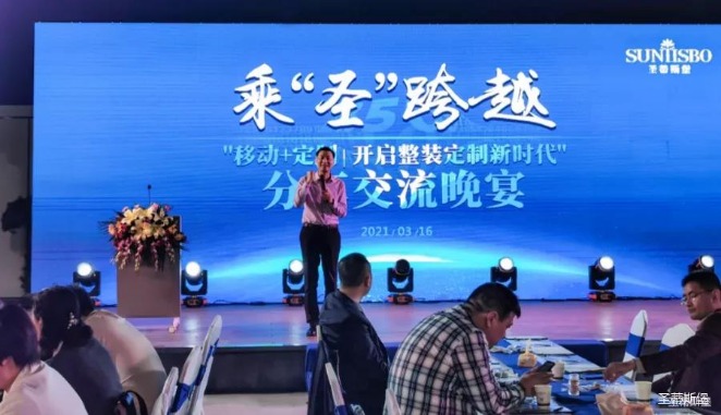2021年3月16日晚5时许,在【圣蒂斯堡】营销中心四楼景观花园举办经销商分享交流会,开启整装定制新时代!随着暖场音乐播放,激动人心的时刻到了。首先,由尊龙时凯集团营销部总经理陈玉伟先生致开幕词,随后,来自全国各地的优秀经销商分享他们的成功之道。
